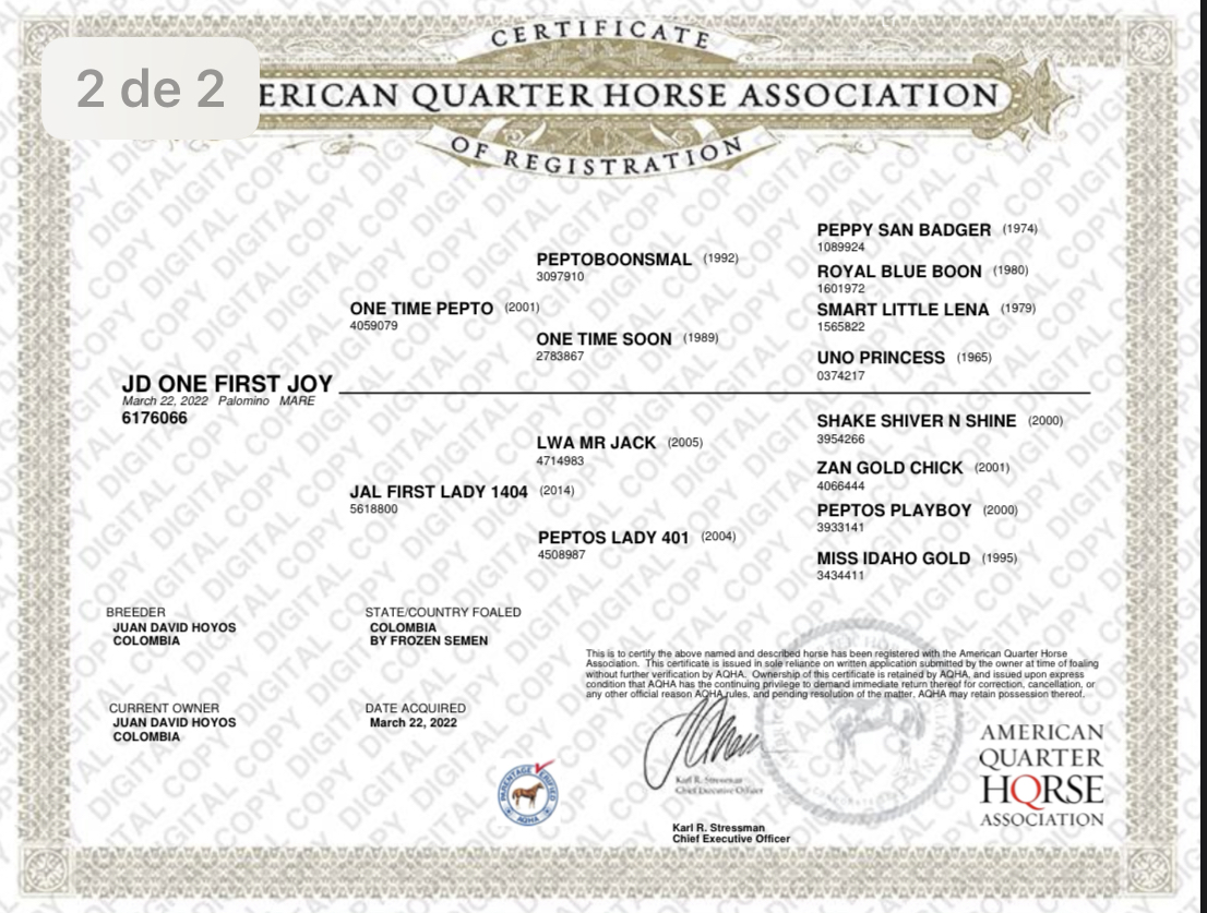 Certificado AQHA y APHA